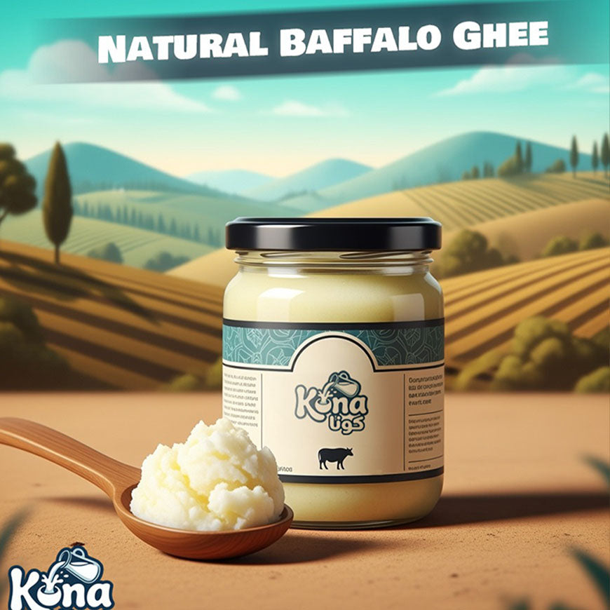 Kona Natural Ghee Approximate Net weight 700 GM – Extracted from a blend of pure cow’s and buffalo’s milk cream for authentic taste, smell, quality and purity.